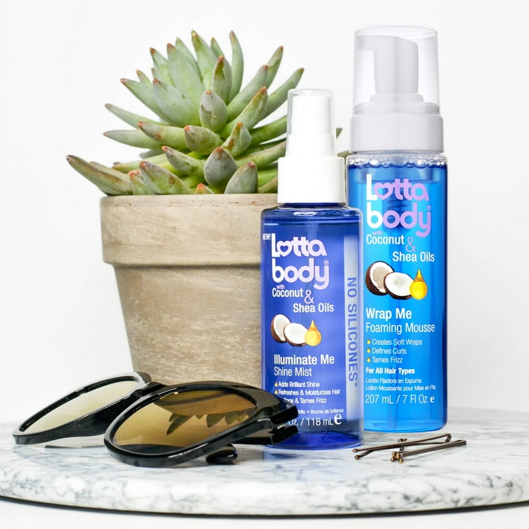 - Combat dry, brittle hair with Lottabody Coconut and Shea Oil Wrap Me Hair Foam Mousse which helps deeply moisturize and transforms dull locks